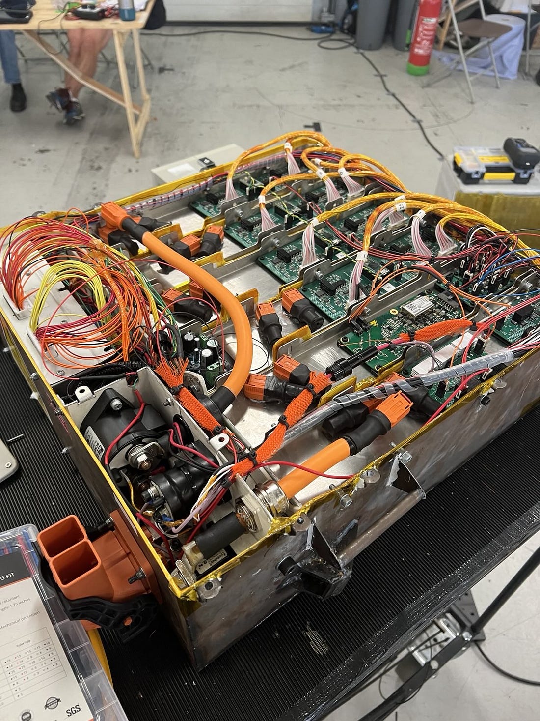 Here’s the high-voltage battery pack I had a hand in designing: I eventually became the powertrain team’s lead, and upon returning from Tesla the following year, moved on to direct all operations related to the driverless vehicle’s hardware design, and later served as president of the team of around 140 members. The students in the team worked on the project part-time, and everyone went above and beyond their academic requirements to get hands-on experience. It was a student-led project – and an especially cool one; we built race cars that drove on actual Formula 1 tracks!