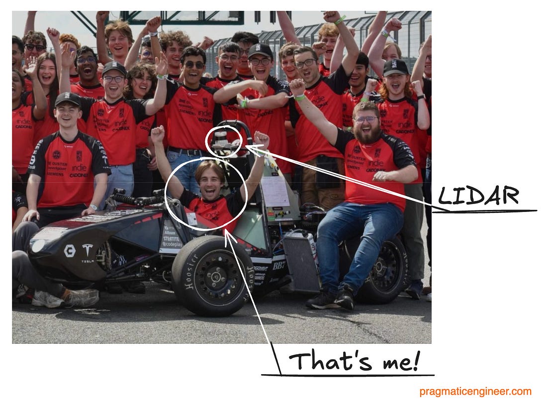 This topic is intriguing because it combines software, hardware, and cutting-edge tech: This is a guest post. If you’re interested in writing a deepdive for The Pragmatic Engineer – collaborating with Gergely on it – check here for more details. The bottom of this article could be cut off in some email clients. Read the full article uninterrupted, online. With that, it’s over to Sandor. You can follow Sandor on LinkedIn, and learn more about his work on his website. 1. Getting into robotics, a personal accountMy interest in robotics began in high school, where I wrote the junior equivalent of a dissertation on characterization methods for how electric motors behave under different conditions. This led me to pursue a degree in electrical and mechanical engineering at the University of Edinburgh, home to numerous renowned robotics and AI researchers. Building a driverless electric race car was one of my bigger projects. At uni, I joined the Edinburgh University Formula Student (EUFS) team, where we designed, built, and raced a driverless electric race car. From a roboticist’s perspective, this is considered a wheeled mobile robot. We designed and built several versions of the car. Here’s a later model: I started working in the electric powertrain team and was responsible for designing and implementing systems that generate and deliver power. It included: