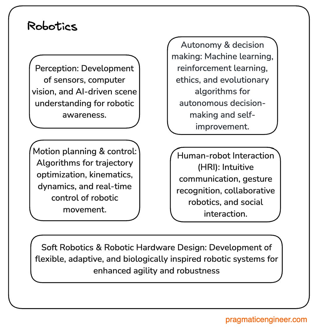 👋 Hi, this is Gergely with a subscriber-only issue of the Pragmatic Engineer Newsletter. In every issue, I cover challenges at Big Tech and startups through the lens of engineering managers and senior engineers. If you’ve been forwarded this email, you can subscribe here. Robotics for software engineersWhat does it take to build and program robots? A look into the exciting, increasingly popular field of robotics. Guest post by humanoid robot expert, Sandor FelberToday, there’s an ever-growing number of startups, scaleups, and established companies like Boston Dynamics producing increasingly capable robots, including ones that look humanoid. Tech giants like Tesla have been building humanoid robots, and Meta is expected to invest billions in the technology. These and other factors point to the possibility that, after artificial intelligence, robotics could be the “next big thing” in tech. But what’s the process of building intelligent robots, and what’s it like as a day-to-day job for the developers who do? It’s not always easy to find this out because robotics startups are famously shrouded in secrecy – and with such cutting-edge technology, it’s unsurprising. Academia is often a bit more open, so I turned to MIT Robot Learning Researcher, Sandor Felber. He’s a Humanoid Robot Learning Researcher at MIT in Boston, Massachusetts, and previously led a team that built a self-driving race car. Sandor’s also been a robotics intern at Tesla in Palo Alto, California, and a robotics R&D engineer at the Edinburgh Center of Robotics. Today, he takes us through: