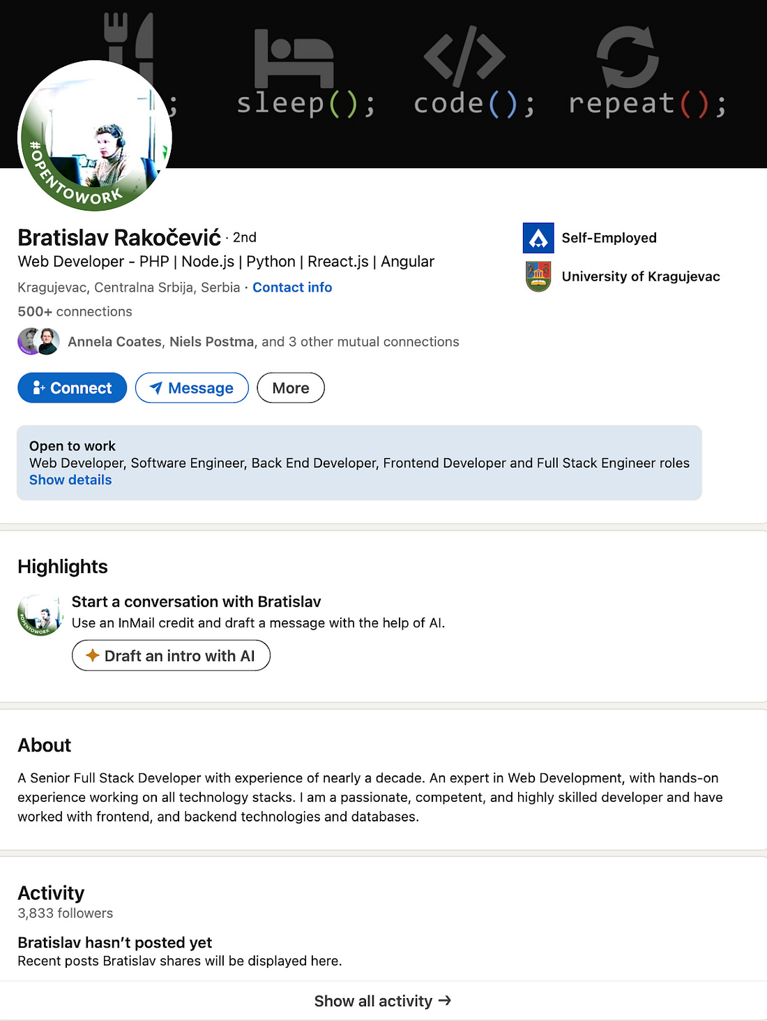 Since every candidate in this article is a cheater with an AI-generated mask of a different face, and a false professional identity, we share all the made-up resumes, CVs, videos, and photos, to give a sense of how things played out. If you’re currently hiring, or plan to, the nature and sophistication of the fake-applicant scam targeting this startup provides food for thought. For more tips in detecting fake applicants, you can also check this handy PDF guide, created by the Vidoc engineering team. The bottom of this article could be cut off in some email clients. Read the full article uninterrupted, online. 1. The first AI fakerVidoc Security is a security provider offering automated code reviews to detect security issues. The idea for the company came from two security engineers and ethical hackers, Dawid Moczadło and Klaudia Kloc. Previously, they hacked top tech companies like Meta and then disclosed vulnerabilities to those places in order to collect bounties, and get on those companies’ ethical hacking leaderboards. With the rise of LLMs in the past couple of years, Dawid and Klaudia spotted an opportunity to create a tool that works in the same way as they searched for security vulnerabilities: looking across the broader codebase, checking how components interact, which parts could be insecure, and more. Basically, an LLM can take their expertise about what works to hack well-designed systems, and build a tool with some of the same know-how. Their idea attracted investors, and Dawid and Klaudia raised a $600K seed round in 2023, and a further $2.5M in seed funding in August 2024. With this seed funding in the bank: the company began hiring. They posted a job ad for a backend engineer, and started to interview candidates. (We share details on the exact hiring funnel and statistics below, in “The hiring funnel”) One promising candidate was called Makary Krol. His LinkedIn profile is still active: