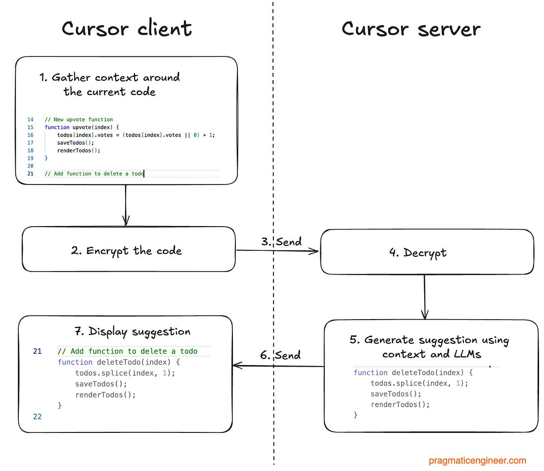 👋 Hi, this is Gergely with a subscriber-only issue of the Pragmatic Engineer Newsletter. In every issue, I cover challenges at Big Tech and startups through the lens of engineering managers and senior engineers. If you’ve been forwarded this email, you can subscribe here. Real-world engineering challenges: building CursorCursor has grown 100x in load in just a year, sees 1M+ QPS for its data layer, and serves billions of code completions, daily. A deepdive into how it’s built with cofounder, Sualeh AsifCursor is an AI-powered IDE which seems the most loved among engineers. In a survey we ran last year, Cursor was the most common answer to the question “what is your favorite editor with GenAI features that help with your work?”. Anysphere is the startup behind Cursor, founded in 2022, with the first version of Cursor released two years ago, in March 2023. Last week, Anysphere shared they’d raised a $900M Series C round, which values the company at $9.9B(!). The business has crossed $500M in annual revenue(!!) which might be a record: no other dev tools company I know of hit this milestone within 2 years of launching its first product. It helps that Cursor is used by more than half of the 500 largest tech companies on the Fortune 500. Also last week, the company launched Cursor 1.0, a major release: notable additions are AI code review (with a tool called BugBot), background agents, and support for memory (remembering details from past chats). I sat down with Cursor cofounder, Sualeh Asif, to find out how Cursor works, and how the team builds the tool, and he shared new details of its internals: