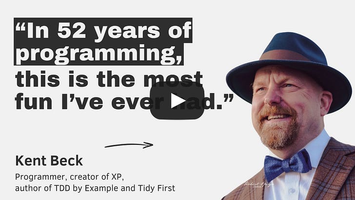 TDD, AI agents and coding with Kent BeckKent Beck—creator of Extreme Programming and co-author of the Agile Manifesto—reflects on decades of coding, from the birth of TDD to his experiments with AI coding tools todayStream the Latest EpisodeListen and watch now on YouTube, Spotify and Apple. See the episode transcript at the top of this page, and timestamps for the episode at the bottom. Brought to You By• Sonar — Code quality and code security for ALL code. • Statsig — The unified platform for flags, analytics, experiments, and more. • Augment Code — AI coding assistant that pro engineering teams love — In This EpisodeKent Beck is one of the most influential figures in modern software development. Creator of Extreme Programming (XP), co-author of The Agile Manifesto, and a pioneer of Test-Driven Development (TDD), he’s shaped how teams write, test, and think about code. Now, with over five decades of programming experience, Kent is still pushing boundaries—this time with AI coding tools. In this episode of Pragmatic Engineer, I sit down with him to talk about what’s changed, what hasn’t, and why he’s more excited than ever to code. In our conversation, we cover: