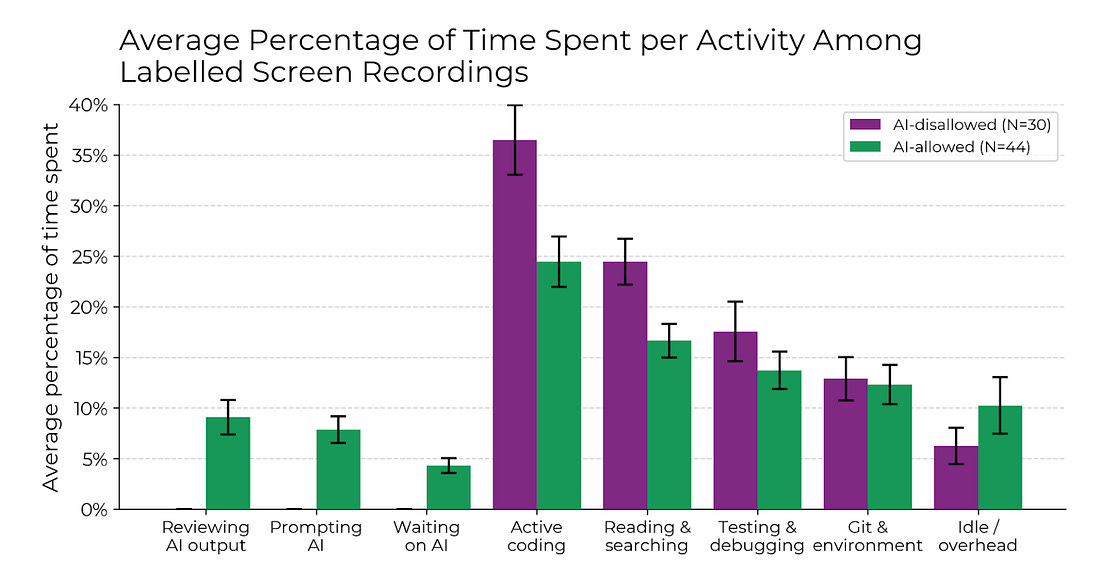 An interesting study has been published by the nonprofit org, Model Evaluation and Threat Research (METR). They recruited 16 experienced developers who worked on large open source repositories, to fix 136 real issues, for pay of $150/hour. Some devs were assigned AI tools to use, and others were not. The study recorded devs’ screens, and then examined and analyzed 146 hours of footage. The takeaway: