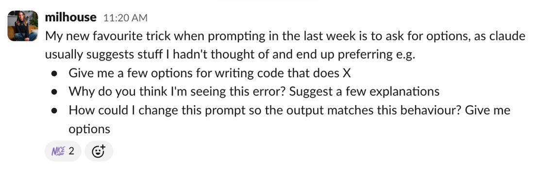 This observation makes sense: increasing coding output will not lead to faster software production, automatically; not without increasing code review throughout, deployment frequency, doing more testing (as more code likely means more bugs), and adapting the whole “software development pipeline” to make use of faster coding. Plus, there’s the issue that some things simply take time: planning, testing, gathering feedback from users and customers, etc. Even if code is generated in milliseconds, other real-world constraints don’t just vanish. #5: Lack of buzz among devsI left this question to last: why do many developers not believe in LLMs’ usefulness, before they try it out? It’s likely to do with the theory that LLMs are less useful in practice, then they theoretically should be. Simon Willison has an interesting observation, which he shared on the podcast:
