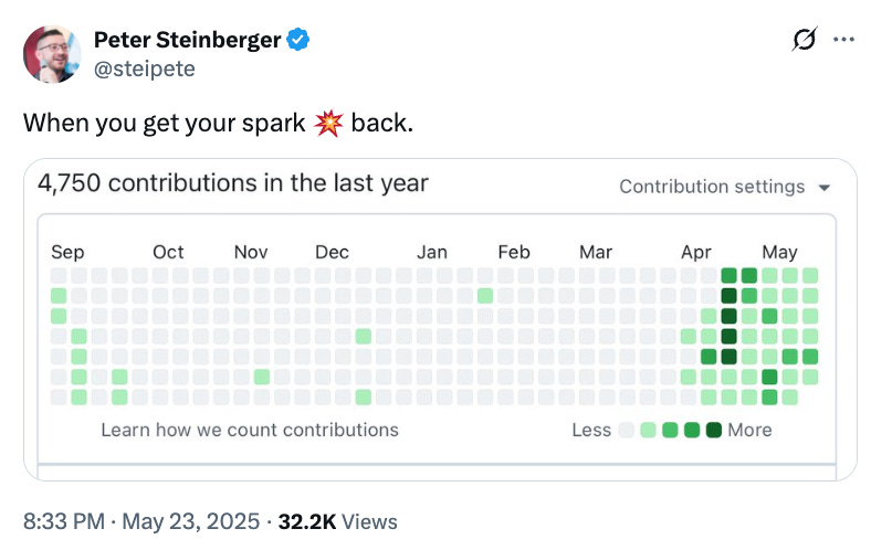 Peter Steinberger: rediscovering a spark for creationPeter Steinberger has been an iOS and Mac developer for 17 years, and is founder of PSPDFKit. In 2021, he sold all his shares in the company when PSPDFKit raised €100M in funding. He then started to tinker with building small projects on the side. Exactly one month ago, he published the post The spark returns. He writes: