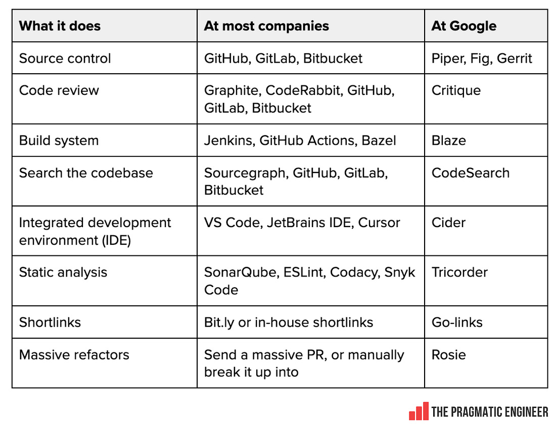The bottom of this article could be cut off in some email clients. Read the full article uninterrupted, online. 1. Planet-scale infraGoogle’s infrastructure is distinct from every other tech company because it’s all completely custom: not just the infra, but also the dev tools. Google is a tech island, and engineers joining the tech giant can forget about tools they’re used to – GitHub, VS Code, Kubernetes, etc. Instead, it’s necessary to use Google’s own version of the tool when there’s an equivalent one. Planet-scale vs GCPInternally, Google engineers say “planet scale” as the company’s capacity to serve every human on Earth. All its tooling operates at global scale. That’s in stark contrast to Google Cloud Platform (GCP), with no such “planet-scale” deployment options built in – it’s possible to build applications that can scale that big, but it would be a lot of extra work. Large GCP customers which managed to scale GCP infrastructure to planetary proportions include Snap, which uses GCP and AWS as their cloud backend, and Uber that uses GCP and Oracle, as detailed in Inside Uber’s move to the cloud. Google doesn’t only run the “big stuff” like Search and YouTube on planet-scale infrastructure; lots of greenfield projects are built and deployed on this stack, called PROD. As an aside, the roots of database Planetscale (the database Cursor currently runs on) run to Google, and its “planet-scale” systems. Before co-founding Planetscale, Sugu Sougoumarane worked at Google on YouTube, where he created Vitess, an open source database to scale MySQL. Sugu now works on Multigres, an adaptation of Vitess for Postgres. I asked where the name Planetscale comes from. He said: