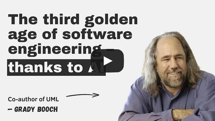 The third golden age of software engineering – thanks to AI, with Grady BoochI sit down with Grady Booch to put today’s AI automation claims in historical context and explain why software engineering is entering another golden age, not disappearing.Stream the latest episodeListen and watch now on YouTube, Spotify, and Apple. See the episode transcript at the top of this page, and timestamps for the episode at the bottom. Brought to You by• Statsig — The unified platform for flags, analytics, experiments, and more. Stop switching between different tools, and have them all in one place. Check out Statsig. • Sonar – The makers of SonarQube, the industry standard for automated code review. Join me online at the Sonar Summit on March 3rd, where I and other eng leaders and devs will share practical strategies for the AI era. • WorkOS – Everything you need to make your app enterprise-ready. One unique thing I learned about WorkOS: all software engineers are product engineers. Learn more about their unique working style in the blog Product Engineering at WorkOS. In this episodeEvery few decades, software engineering is declared “dead” or on the verge of being automated away. We’ve heard versions of this story before. But what if it’s just the start of a new “golden age” of a different type of software engineering, like it has been many times before? In this episode of The Pragmatic Engineer, I’m joined once again by Grady Booch, one of the most influential figures in the history of software engineering, to put today’s claims about AI and automation into historical context. Grady is the co-creator of the Unified Modeling Language, author of several books and papers that have shaped modern software development, and Chief Scientist for Software Engineering at IBM, where he focuses on embodied cognition. Grady shares his perspective on three golden ages of computing since the 1940s, and how each emerged in response to the constraints of its time. He explains how technical limits and human factors have always shaped the systems we build, and why periods of rapid change tend to produce both real progress and inflated expectations. He also responds to current claims that software engineering will soon be fully automated, explaining why systems thinking, human judgment, and responsibility remain central to the work, even as tools continue to evolve. Key observations from Grady on the state of the tech industryHere are ten observations from Grady that I found the most interesting: 1. We are in the middle of the “third golden age of software engineering.” The first golden age was about algorithms (1940s to 1970s), the second one about object oriented abstractions (1970s to the 2000s) and this third golden age is about systems. This golden age started with the rise of abstraction from individual components to whole libraries, platforms, and packages — not with the recent AI boom. Though AI fits into this, as it helps create even more complex systems with less effort than before. 2. Existential crises are nothing new in software engineering. Grady recalls that when compilers and higher-level languages emerged, developers feared obsolescence then too — and the profession evolved. 3. We are an astonishingly young field — and that should ground our panic. “The term ‘digital’ was not coined until the late 40s, the term ‘software’ was not done until the 50s.” Some of the existential dread about AI is happening in an industry that’s barely 70 years old. 4. AI coding tools represent another rise in abstraction, not the end of engineering. Just as we moved from assembly to Fortran to object-oriented programming, AI assistants are “akin to what was happening with compilers in these days.” Grady frames it simply: “Fear not, developers. Your tools are changing, but your problems are not.” 5. Current AI tools are trained mostly on patterns we’ve already seen. Grady observes that tools like Cursor and Claude “have mostly been trained upon a set of problems that we have seen served over and over again.” They’re excellent at automating known patterns — especially web-centric CRUD systems — but the frontier of computing is far larger. 6. Deep foundations become more important as the field accelerates. Grady noted that the field is moving at an incomprehensible pace for people without deep foundations and a strong model of understanding. He specifically recommends reading Minsky’s Society of Mind for architectural guidance. 7. Infrastructure and delivery pipelines are ripe for automation — and job displacement. Grady identifies “the software delivery pipeline” as “low hanging fruit for the automation” — complex, messy work where agents can provide clear economic value. People in these roles will need to re-skill. 8. The shift now is from programs and apps to systems. Engineers who understand complexity at scale and can manage human as well as technical forces will see greater demand. 9. AI lets you redirect attention from friction to imagination. As Grady puts it: “Some of the friction, some of the constraints, some of the costs of development are actually disappearing for you, which means now I put my attention upon my imagination to build things that simply were not possible before.” 10. This is the time to soar, not to fear the abyss. Grady closes with a call to action: “You can either take a look and say, darn, I’m gonna fall into it, or you can say, no, I’m going to leap and I’m going to soar. This is the time to soar.” The Pragmatic Engineer deepdives relevant for this episodeTimestamps(00:00) Intro (01:04) The first golden age of software engineering (18:05) The software crisis (32:07) The second golden age of software engineering (41:27) Y2K and the Dotcom crash (44:53) Early AI (46:40) The third golden age of software engineering (50:54) Why software engineers will very much be needed (57:52) Grady responds to Da