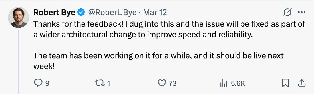 This is a pretty basic bug you might expect in a prototype, except that this is the landing page of Claude.ai, and it’s a bug that impacts every paying customer – easily millions – every day. Even worse, the bug happens every time you visit the site. Somehow, nobody at Anthropic tested the site to catch a plainly obvious bug which impacted 100% of paying customers. At the same time, no company uses AI coding tools more than Anthropic: around 80% of the company’s code is now generated by Claude Code, so we can assume a good part of the website is also created that way. My complaint about Anthropic’s website being broken went a bit viral and got the attention of the developer team: