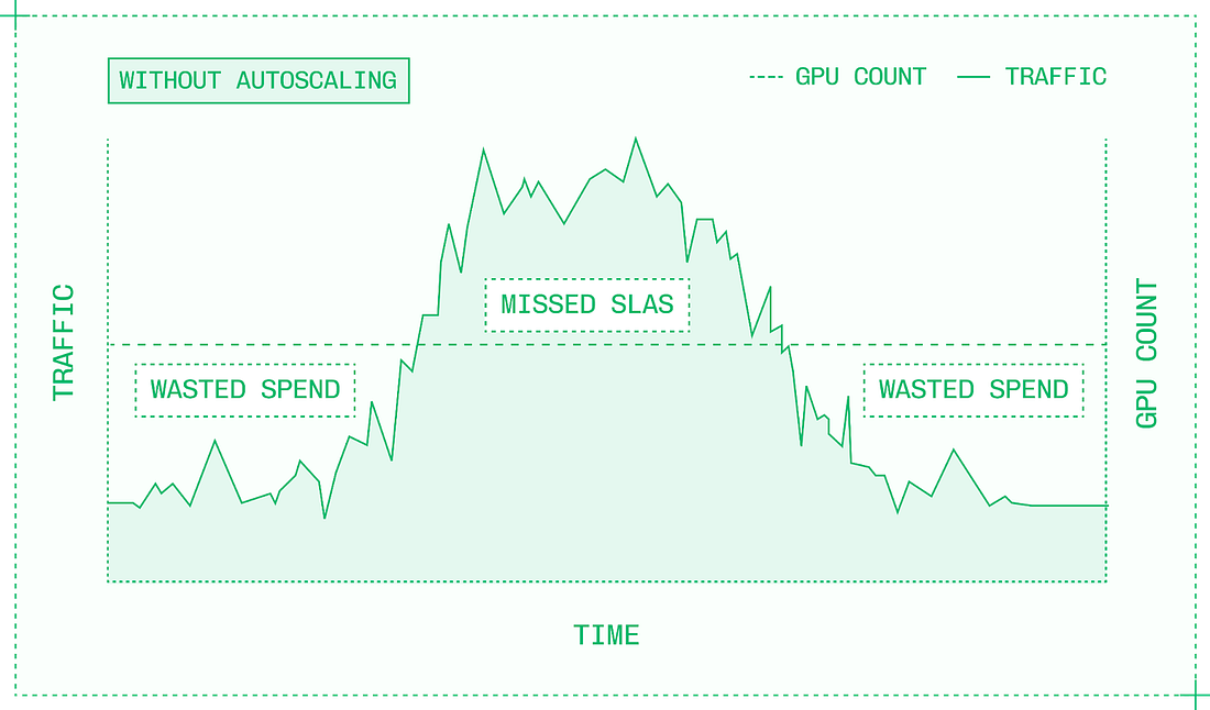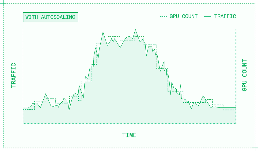 Most inference engineering today happens at the higher levels of abstraction, configuring and deploying inference engines and orchestrating inference across multiple GPUs. No matter which level of the stack you work at, it’s essential to have a strong mental model for the adjacent levels of abstraction to guide your work. 6. What infrastructure does inference need?When you scale production traffic, your assumptions are rigorously tested. Everything from input and output sequence lengths, to traffic patterns, to what topic a user decides to chat about; they all impact your observed performance in production. And maintaining secure, robust infrastructure is an entirely different skillset from optimizing model inference on the GPU. No matter how fast and efficiently a single instance can serve a model, the service will be overwhelmed if traffic gets high enough. It’s an infrastructure problem, not with PyTorch or CUDA, and it requires a different mindset and different technologies. Scaling in production introduces new complexities about where and how to get GPUs, balance traffic across them, and prevent downtime. The goal of autoscaling is to ensure you always have enough resources to serve all incoming requests, while maintaining latency SLAs and without wasting money on idle GPUs. Autoscaling systems use Kubernetes, an open-source container orchestration system, along with a cluster-level system for provisioning and deallocating compute. Kubernetes can run one or more replicas of a model container, each on its own instance. An instance includes the GPUs and other hardware resources that the container requires. Unless your traffic is unusually consistent, there probably isn’t a specific number of replicas that perfectly matches your needs. Autoscaling is the practice of dynamically adjusting the number of replicas allocated to a given model within a cluster. There are two ways to make autoscaling decisions:
