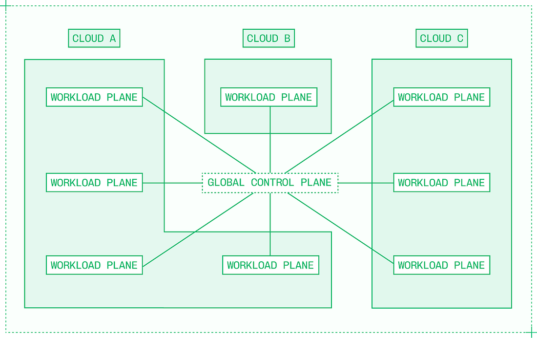 The exact configuration determines how well the autoscaling system achieves its goals of maintaining latency SLAs without wasting resources. For example, increasing the scale-down delay prevents premature scaledowns for spikey traffic, but could result in unnecessary spend after traffic has properly cooled down. Autoscaling within a single cluster works up to a certain point, but high-volume deployments serving a global user base need thousands of GPUs distributed around the world. It’s straightforward to build multi-cloud inference as a collection of siloed compute across different cloud providers. But in these setups, there’s no way to use inter-cloud compute fluidly, and moving workloads across clouds is a tedious, error-prone process. True multi-cloud inference requires building a multi-region, multi-provider bin packing tool, which treats distinct pools of compute as fungible with each other. Like Kubernetes within a single cluster, multi-cloud capacity management must take a global view, enabling global scheduling. Running true multi-cloud inference unlocks: