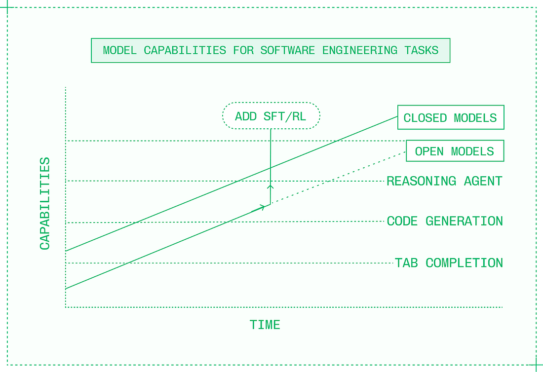 Before December 2024, there was a meaningful gap in intelligence between closed and open models, but when DeepSeek V3 and R1 were released, that gap disappeared. Note from Gergely: we previously covered how DeepSeek’s release rocked the AI industry. Today, new closed models are matched by open models within months if not weeks, and occasionally, open models like Kimi K2 Thinking even exceed closed models’ capabilities for brief periods. Despite the fact that open models are constantly chasing closed models on benchmarks, they nonetheless change the equation for AI product builders. And as both types improve, closed and open models cross capability thresholds. In 2022, it was impossible to build the kinds of AI-native products that define the industry today. But over time, closed models got smarter and new categories like customer service voice agents and AI-powered IDEs became possible. The early models were slow, expensive, and unreliable, but the capabilities were there and AI engineers began building companies around them. As open models crossed the same capability thresholds, these folks began using them to replace closed models. Many also began fine-tuning open models to cross capability thresholds faster, and even exceed closed model quality in their specific product and domain. Switching to open models means the opportunity to use inference engineering to make the models powering AI products better in new ways: